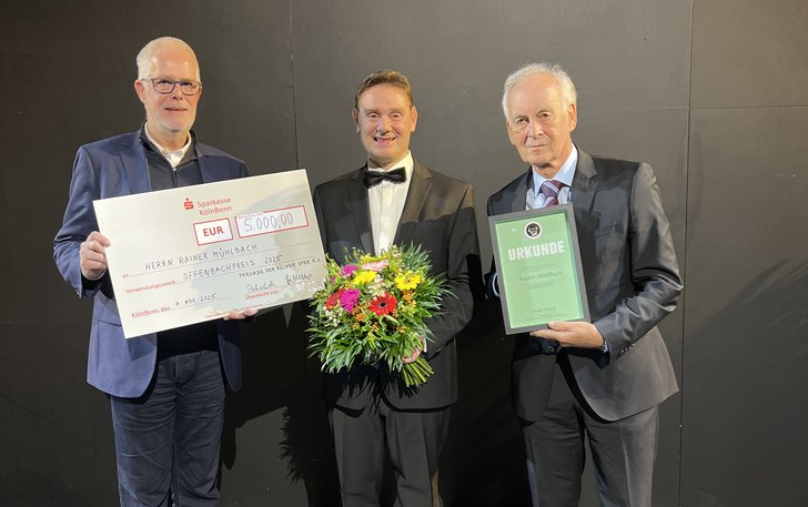 Die Freunde der Kölner Oper e.V. hatten Mitglieder des Vereins und Opernbesucher zum Fest der schönen Stimmen eingeladen, bei dem auch traditionell der Offenbachpreis an ein junges Ensemblemitglied verliehen wird, das sich durch besondere künstlerische Leistungen ausgezeichnet hat. In diesem Jahr war die Wahl auf Rainer Mühlbach, den Leiter des Internationalen Opernstudios der Oper Köln und musikalischen Leiter der Kinderoper gefallen, der in dieser Funktion seit der Spielzeit 2012.13 an der Oper Köln tätig ist. In seiner Laudatio hob der Vorsitzende des Vereins die großen Verdienste Rainer Mühlbachs hervor und betonte, dass dieser die Kriterien für die Verleihung des Offenbachpreises wie kein Zweiter erfülle. Obwohl schon vorgerückteren Alters sei er unglaublich jung geblieben und seine Begeisterung für die Kunst und für die Oper, vor allem aber sein bewundernswertes Engagement für die Kinderoper habe in nichts nachgelassen. Stationen einer ruhmreichen Musikerkarriere wurden noch einmal in Erinnerung gerufen. Rainer Mühlbach, in jungen Jahren Assistent von Leonard Bernstein, dirigierte nicht nur bedeutende nationale und internationale Orchesterformationen, sondern war als Dirigent an so bekannten Opernhäusern wie Hamburg, Dresden, Basel, Köln, Düsseldorf oder dem Grand Théâtre de Genève sowie an der Oper Graz und der Opéra de Paris ein gern gesehener Gast. Konzertreisen führten ihn nach Baden- Baden, ins Lincoln Center New York, nach Kopenhagen, Washington und Madrid. Von 2004 – 2007 war er Generalmusikdirektor in Münster, bevor er dann endgültig in Köln die Zelte aufschlug und ganz wesentlich dazu beitrug, die dortige Kinderoper zu einer vielbeachteten Kulturinstitution in Köln zu entwickeln. Unvergessen ist seine Erarbeitung eines Rings des Nibelungen für Jung und Alt (2017 -2019), die u.a. dafür ursächlich war, dass die Kölner Kinderoper mit dem OPER! Award für das »Best Education Programm deutschsprachiger Bühnen« ausgezeichnet und für 2022 mit der Ring-Produktion nach Korea eingeladen wurde.